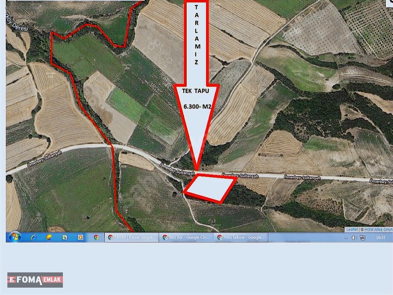 95 METRE CADDEYE ÇEPHESİ VAR, 6.300 METRE TEKTAPU TARLA SATILIKTIR.